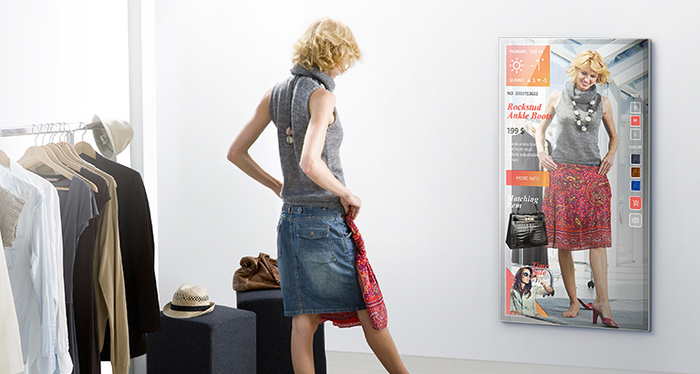 Zrkadlové MLE displeje od spoločnosti Samsung posúvajú nakupovanie smerom k osobnejšiemu zážitku a lepšej informovanosti zákazníkov tým, že kombinujú silu a dosah digitálnej komunikáce s vizuálnou čistotou štandardného zrkadla. Vysoká miera odrazu svetla (55 %) umožňuje vykreslenie odráženého obrazu na MLE displeji spolu s pridaným obsahom v reálnom čase a s minimálnym vizuálnym skreslením. Prostredníctvom vylepšenej vizuálnej presnosti môže MLE displej slúžiť ako cenný nástroj predaja, ktorý presvedčí a informuje zákazníkov.